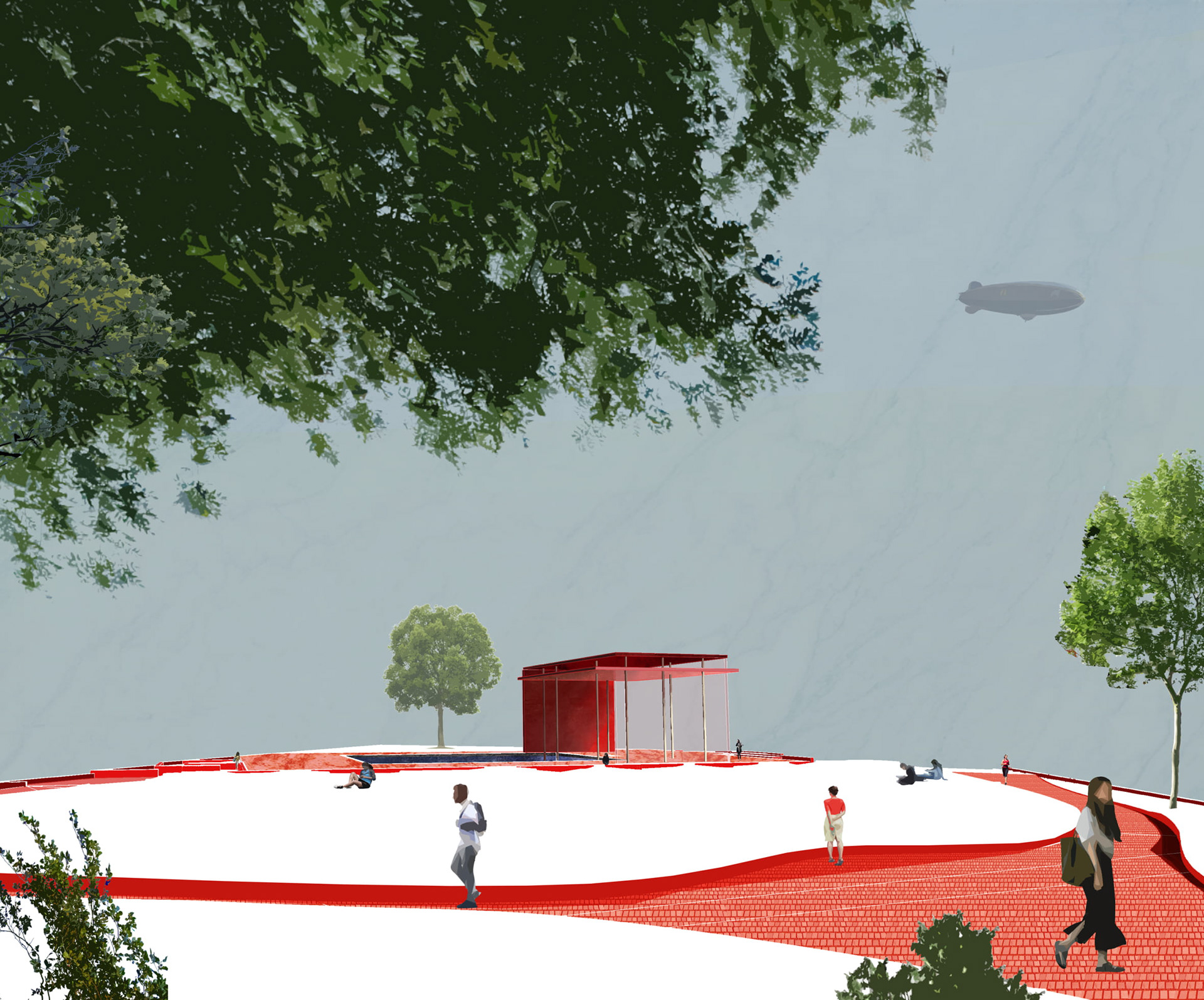 Given the task to educate and change a negative context of confederate monuments throughout the nation, our group was assigned the Robert E. Lee statue in Market Street Park. This park is rarely used by the public. In 2017, during a peaceful rally, a car was driven into a crowd of people, killing Heather Heyer and injuring 19 others. While the state government covered the statue with a black tarp as a solution, our group decided to change the context of the location to be a learning experience and a memorial pavilion for Heyer and those injured. We sunk the 26 foot tall statue into a pool of water. This brought the height to about 10 feet out of water making the statue less daunting. The pavilion being taller than the statue shifts the importance to no longer be Robert E. Lee. The pavilion has two walls, one is solid and the other is a partially opaque glass wall. As visitors move through the newly designed park, the viewers see the statue in different ways; constantly changing the perspective. Our goal was to take a negative, unused space and create a peaceful and inclusive place to learn about the past.